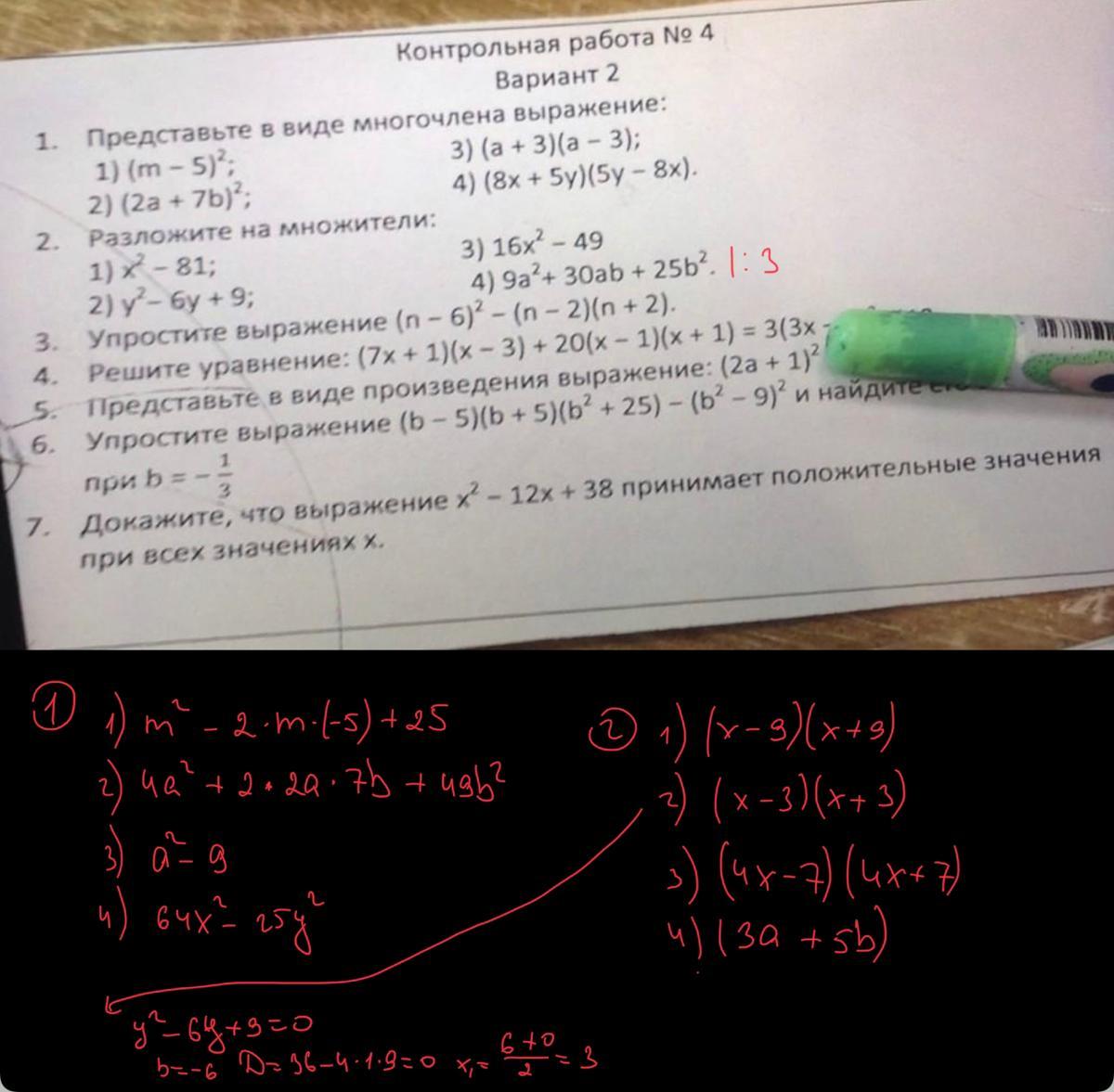 7 класс , тема преобразование многочлена в квадрат суммы или разности двух выражений