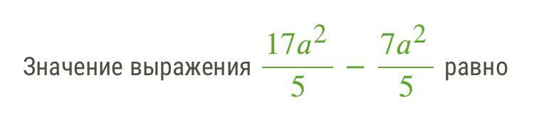 Значение выражения 17a^2/5 - 7a^2/5 равно 2a^2.
