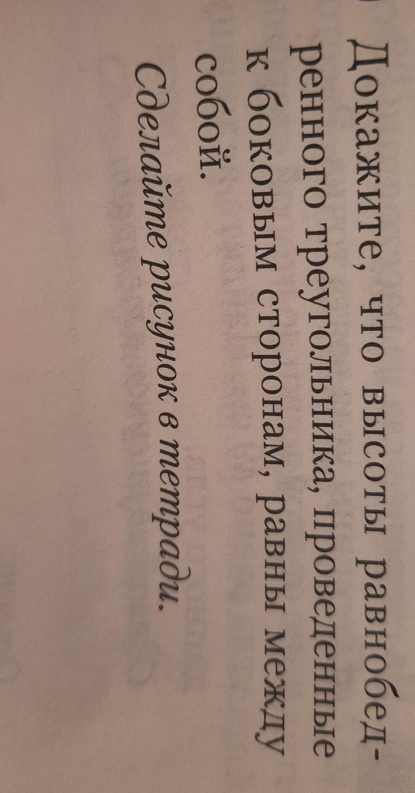 тогда можешь через признак о равенстве треугольников по стороне и двум углам доказать что и высоты в равных треугольниках равны вот и все , сорь, картинку не могу прикрепить .