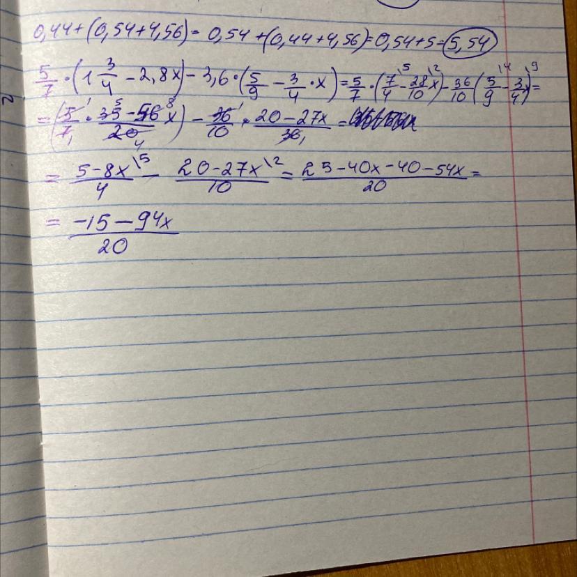(5/7 * 7/4) - (5/7 * 2. 8/10х) - (3. 6/10 * 5/9) + (3. 6/10 * 3/4х) =