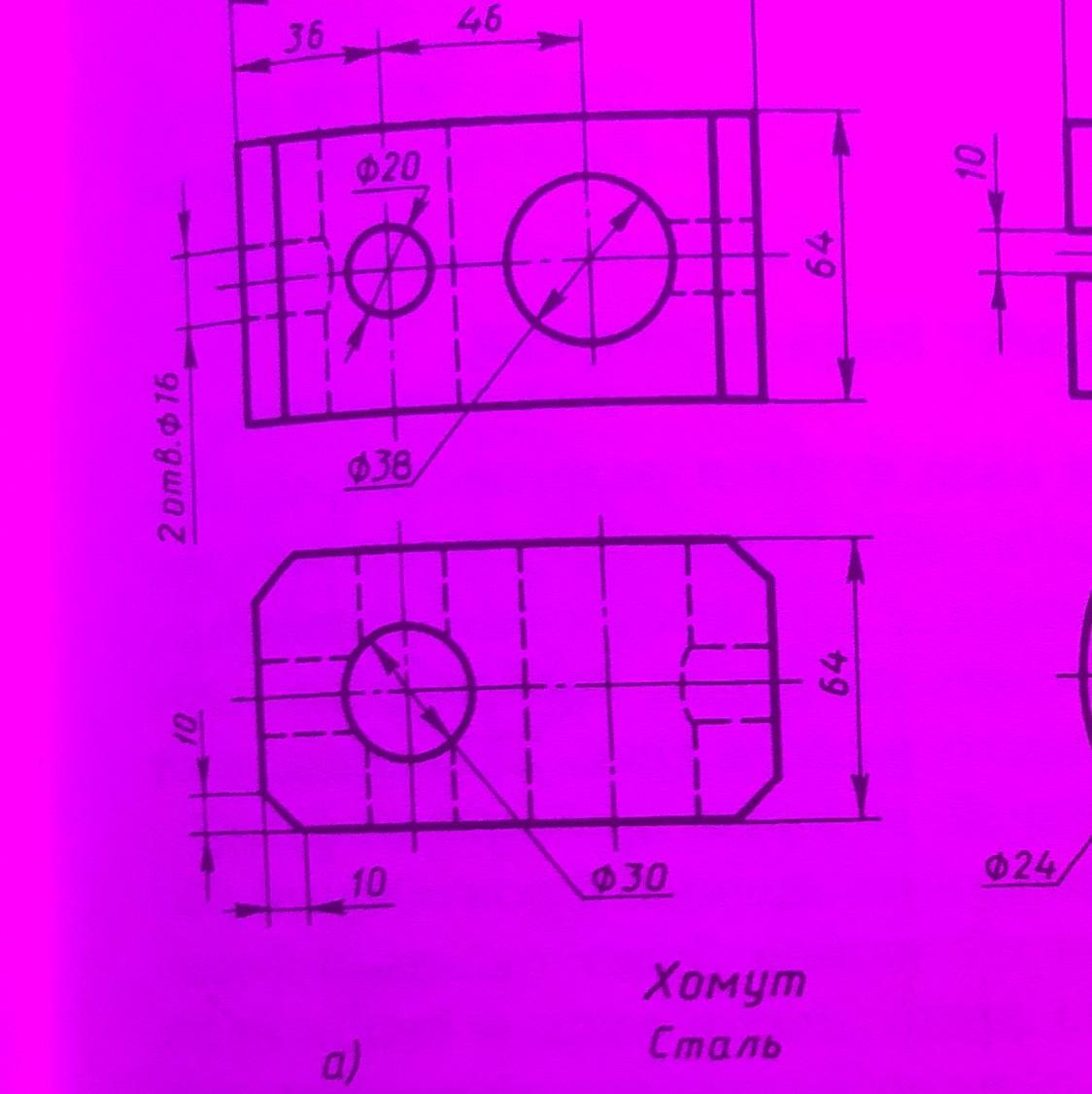 Нужно построить фронтальный и горизонтальный разрезы этой детали
