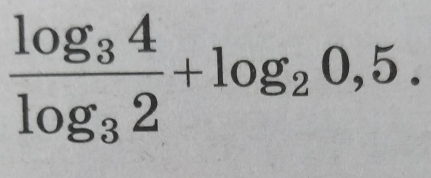 \boxed {\ log_{a}b=\dfrac{log_{c}b}{log_{c}a}\ \ ,\ \ \ log_{a}x^{k}=k\cdot log_{a}x\ \ ,\ \ \ log_{a}a=1\ }\\\\\\\dfrac{log_34}{log_32}+log_2\, 0,5=log_24+log_2\dfrac{1}{2}=log_22^2+log_22^{-1}=2\, log_22-log_22=\\\\\\=2\cdot 1-1=2-1=1