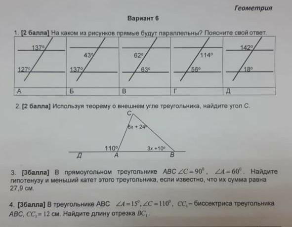 43 + 137 = 180°. ⇒ На рис Б прямые параллельны по признаку параллельности прямых