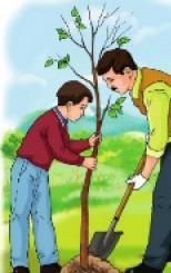 Әкем мен екеуміз есік алдына ағаш отырғыздық.