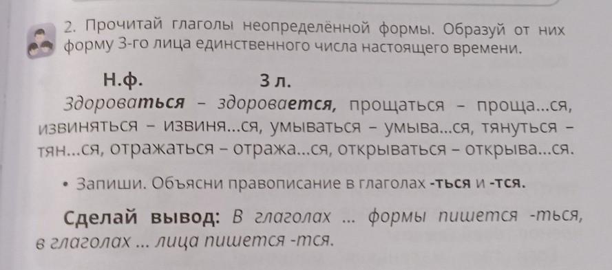 2. Прочитай глаголы неопределенной формы. Образуй от них
