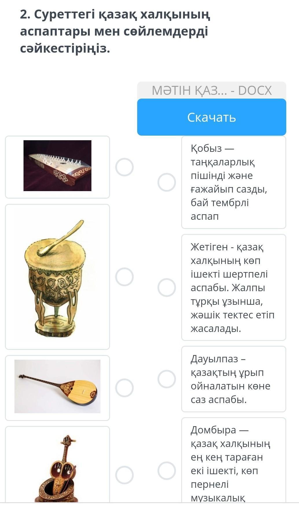 пожалуйста Казактын саз аспаптары - гасырлар