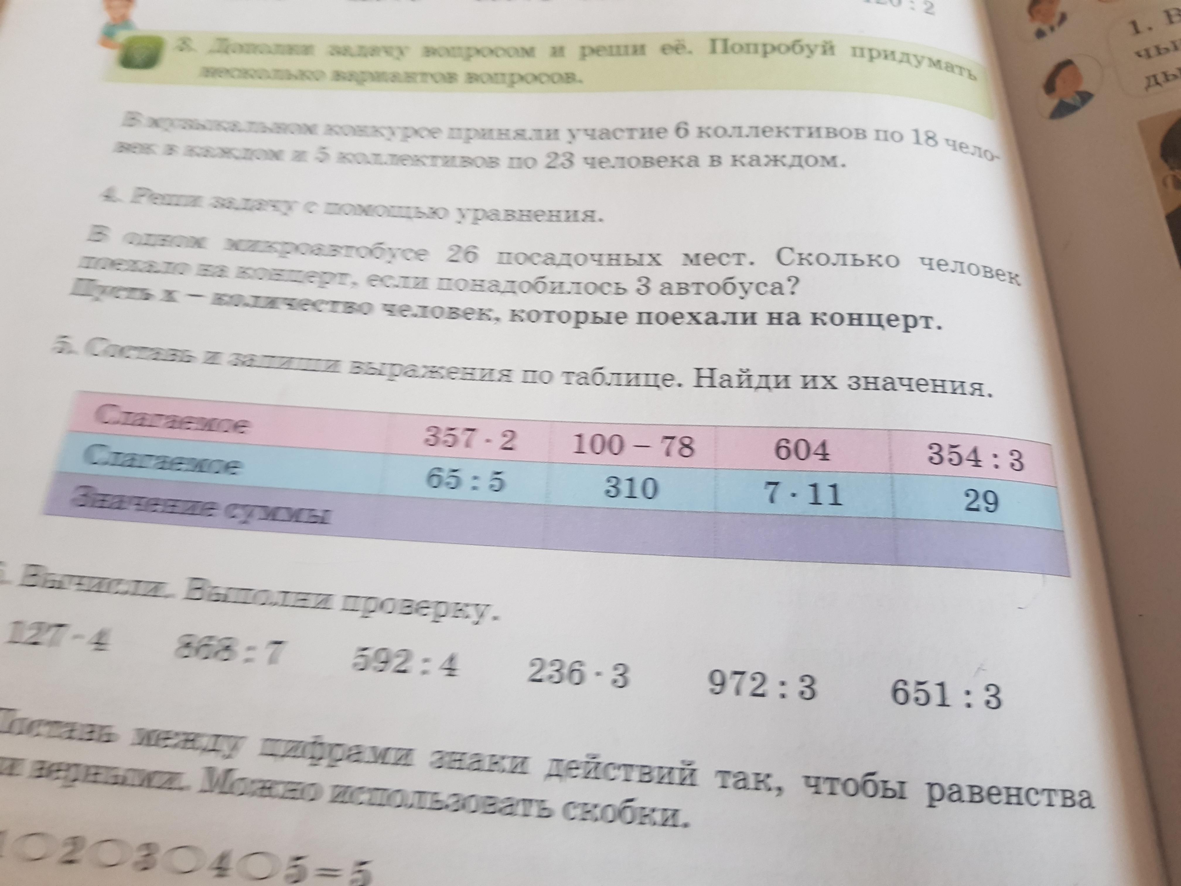 357•2=707 65:5=13 707-13=694 100-78=22 310+22=332 7•11=77 604-77=527 354:3=118 118-29=89