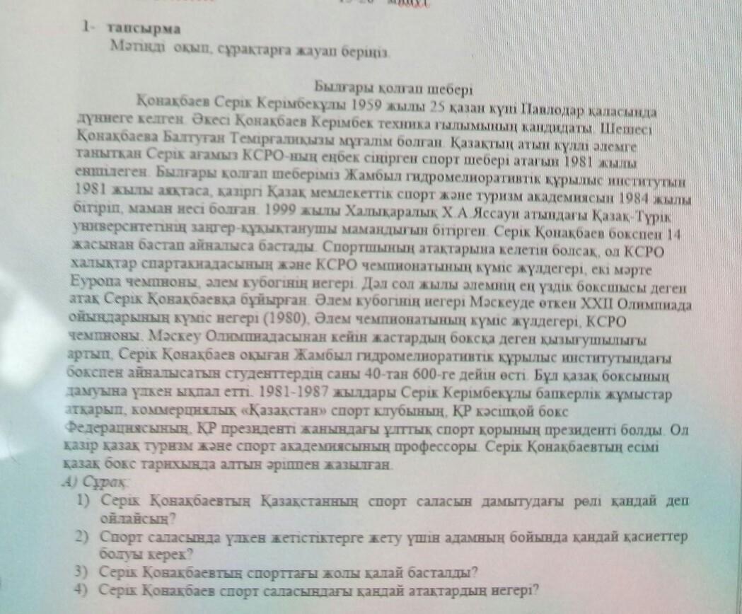 Мәтінді оқып сұрақтарға жауап беріңіз.