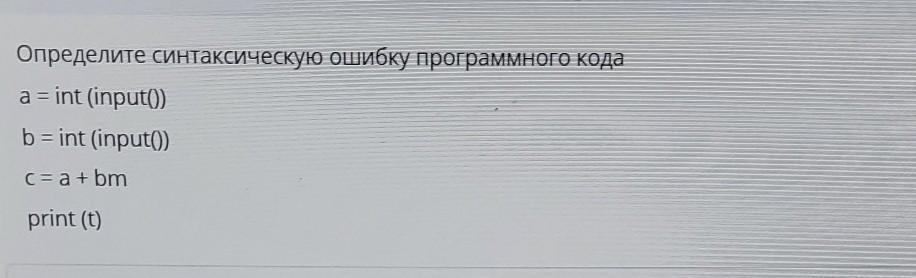 Определите синтаксическую ошибку программного кода
