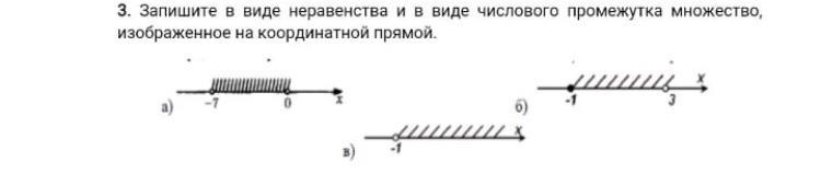 3.запишите в виде неравенства и в видео числового промежутка множество изобиженное на координатной прямой