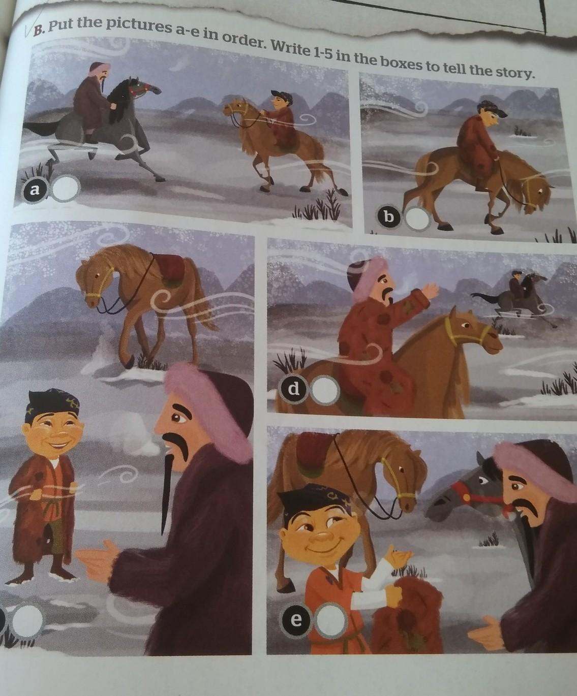 Aldar Kose had an old horse and an old fur coat, he was cold. But then he saw the rich man, deceived him and rode off with new things.