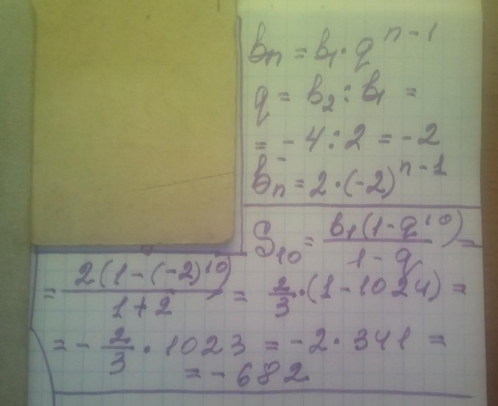 Послідовність 2 - 4,8,-16 геометрична прогресія. Визначте її n-й член і суму перших десяти членів