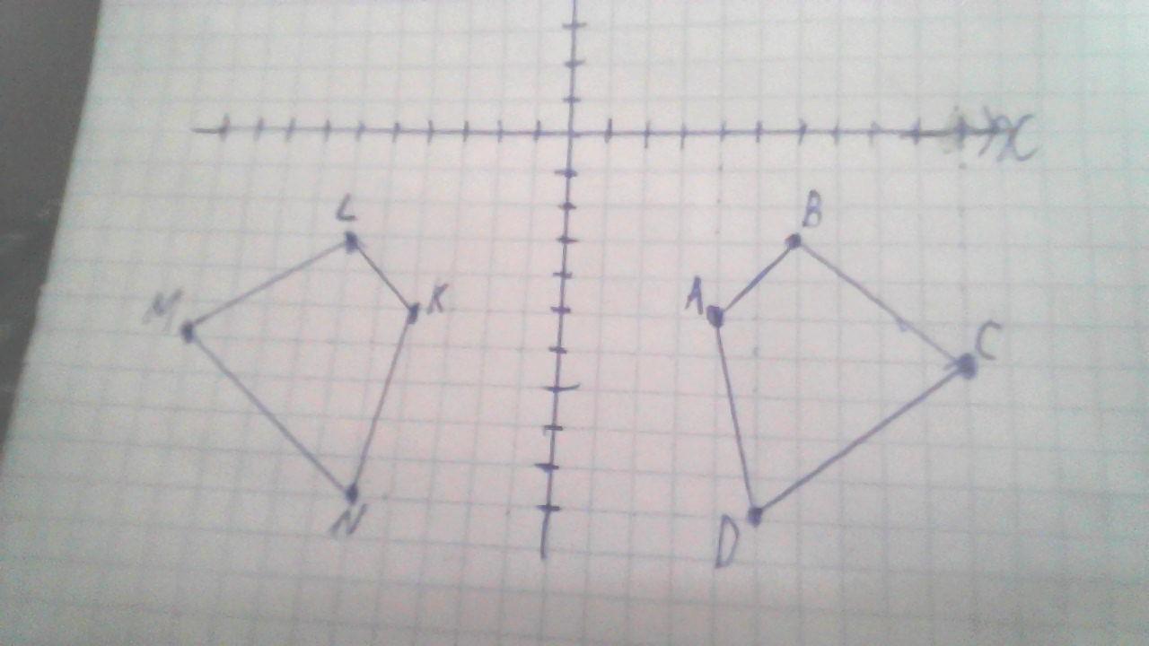 2) Постройте фигуру KLMN симметричную ABCD относительно оси Оу;