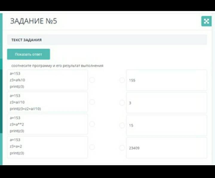 Соотнесите программу и его результат выполнения.