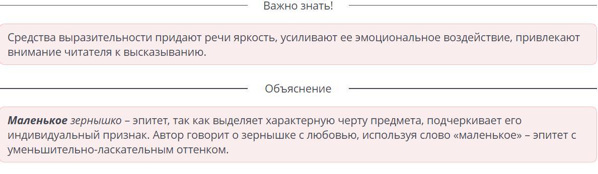 Определи, какое художественное средство выразительности демонстрирует отношение автора произведения к зернышку.