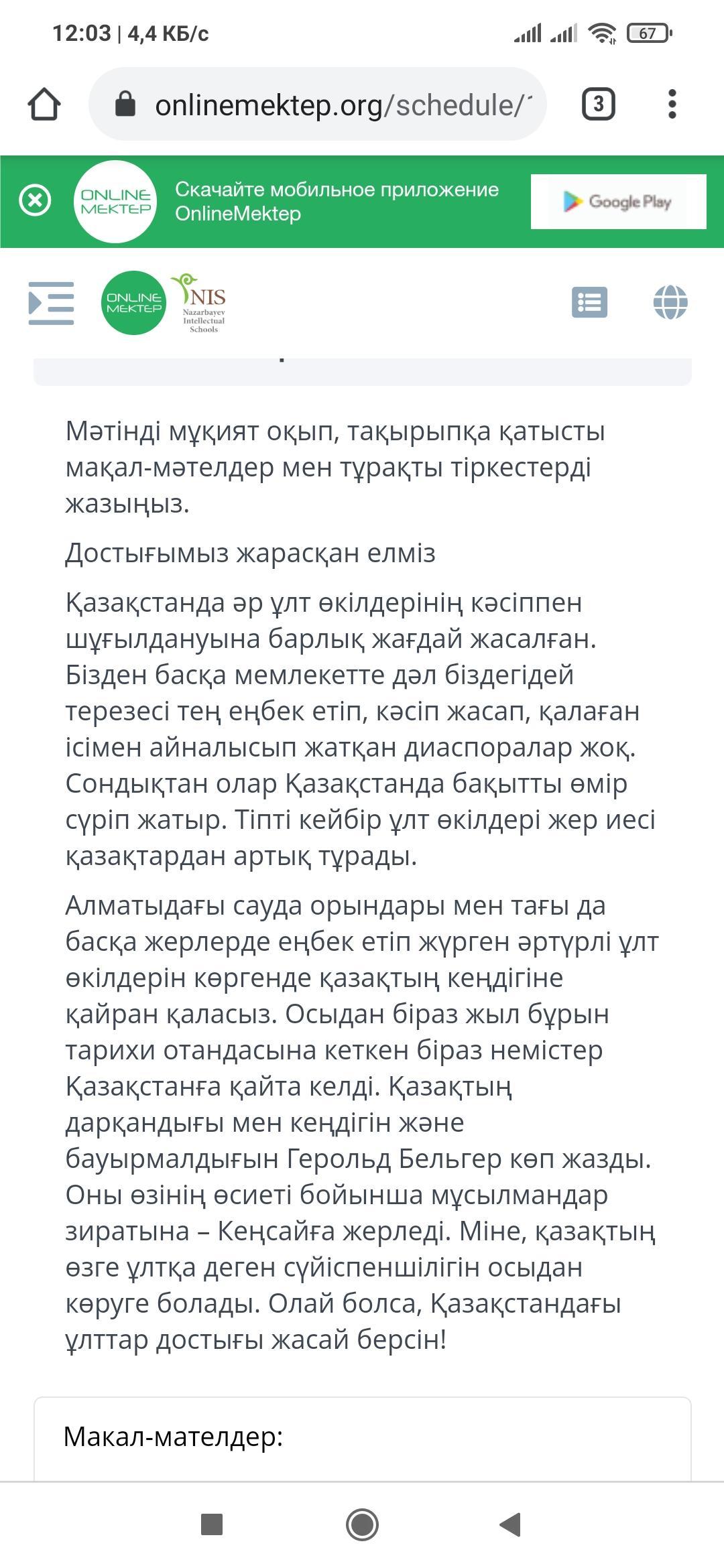 ал мен негізгі тақырыпқа қарап отырып мақалдар жаздым