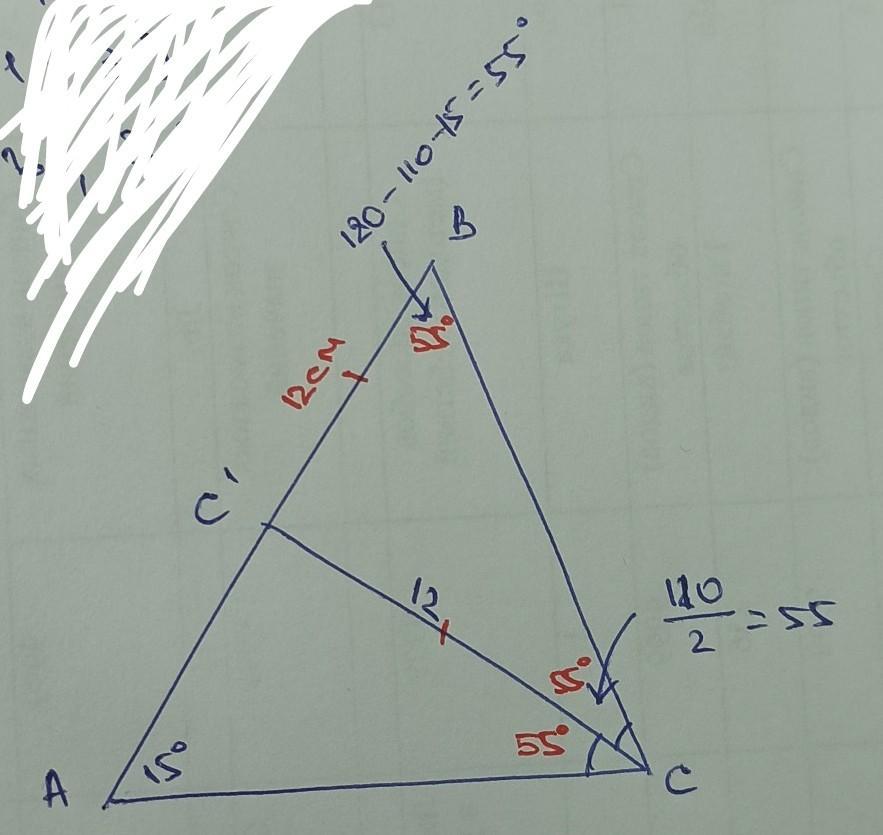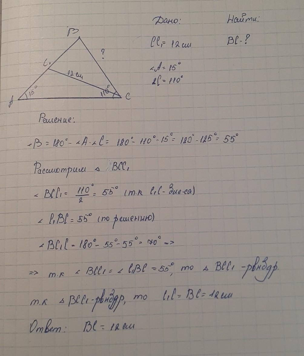 4. [3балла] В треугольнике ABC ZA = 15°, 2C = 110°, CC, – биссектриса треугольника
