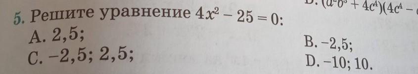 4х^2-25=0 4х^2=25 х^2=25:4 х^2=6,25 х= + -2,5
