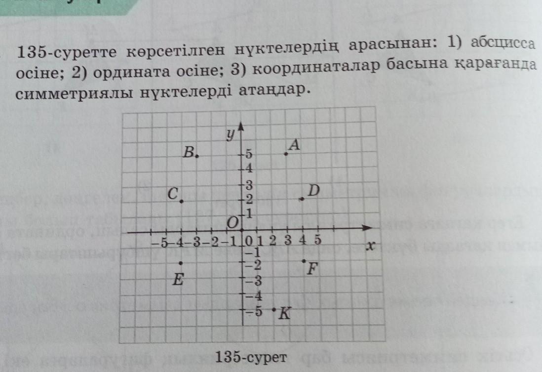 Координаталар басына қараған симметриялы нүктелер: С-F; E-D