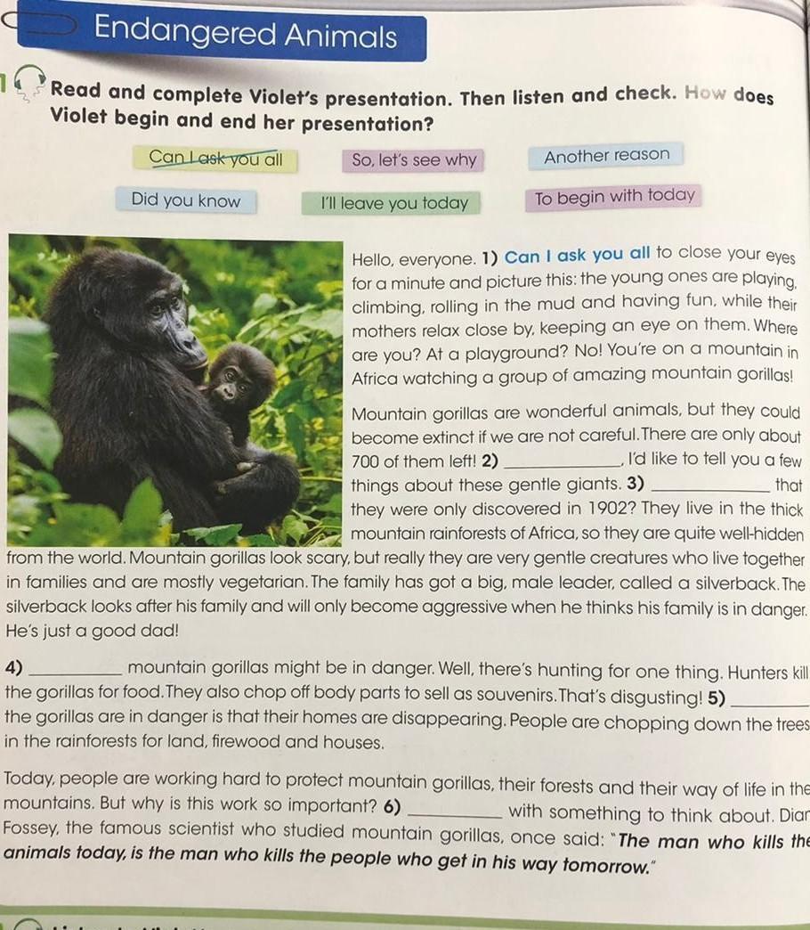 from the world. Mountain gorillas look scary, but really they are very gentle creatures who live together