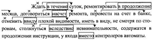 Ждать (в)течени.. суток, ремонтировать (в)продолжени.. месяца, договориться (на)счёт ремонта, положить (на)счёт в банке, отменить (в)виду плохой видимост.., иметь (в)виду, (не)смотря по сторонам, столкнуться (в)следстви.. невнимательност.., содержатся (в)продолжени.. инструкции.