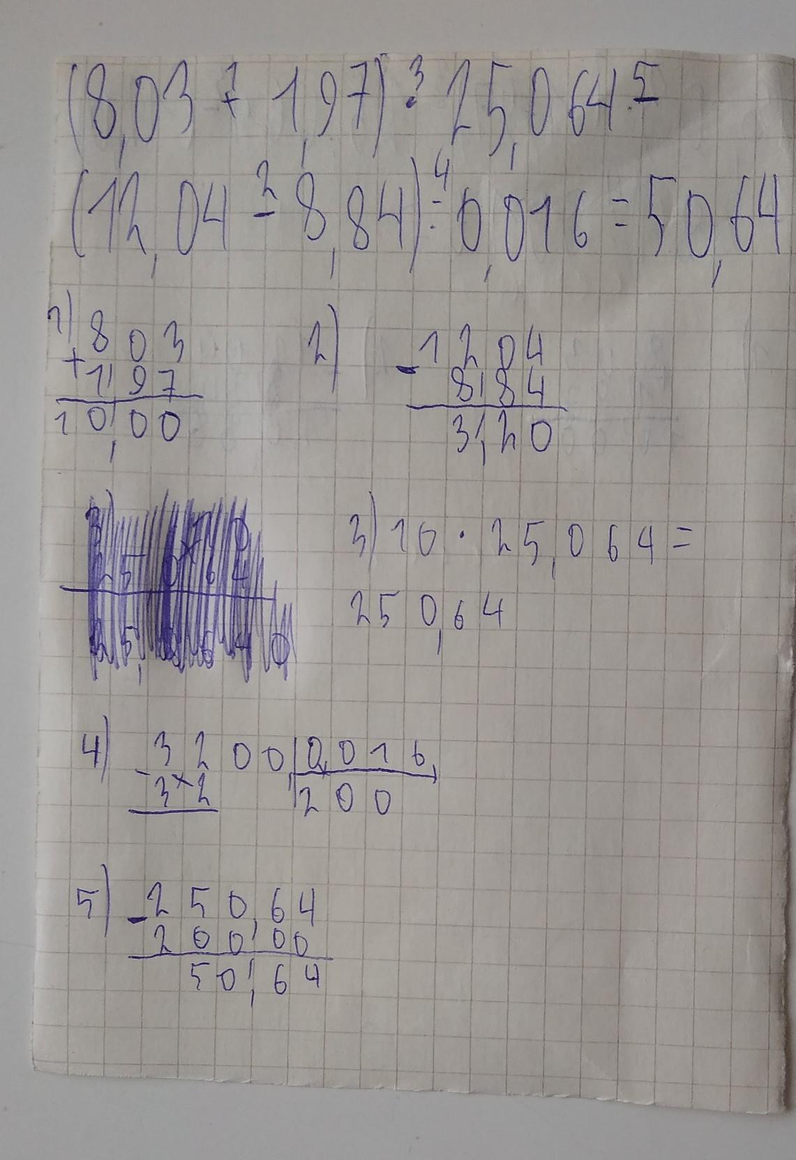 1) Первое действие выполняем в скобках - 8,03+1,97 = 10