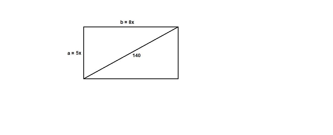 Обозначим стороны прямоугольника (т.е. катеты треугольников) как 8х - большая и 5х - меньшая. По теореме Пифагора в прямоугольном треугольнике(стороны прямоугольника - катеты, диагональ - гипотенуза) получим:
