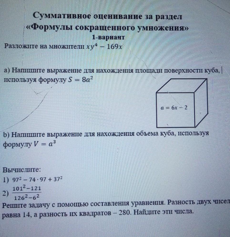 2. а) Нашите выражение для нахождения площади поверхности куба, |