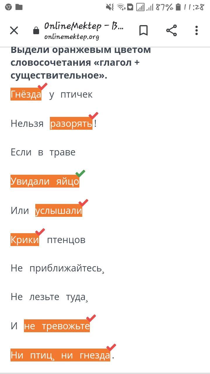 Выдели оранжевым цветом словосочетания глагол + существительное