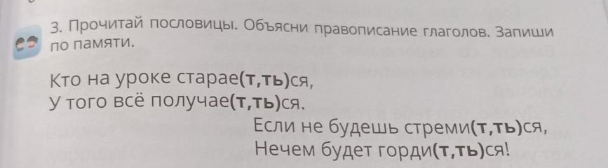 3. Прочитай пословицы. Объясни правописание глаголов. Запиши