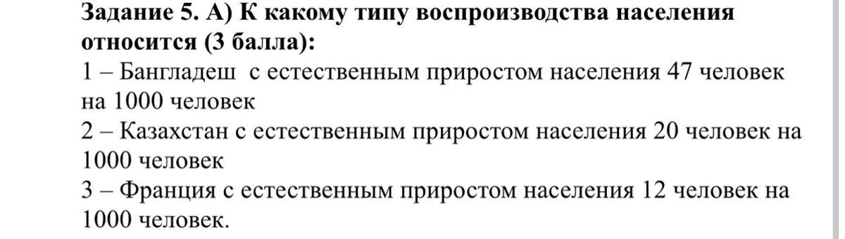 2 – Казахстан с естественным приростом населения 20 человек на 1000 человек. 1 тип