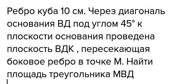 Ответ: S(МВД) = (1/2)*10*10√2 = 50√2 см².