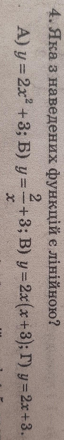А) y = 2х^2 +3; Б) y = 2/х +3; В) y = 2х(х+3); Г) y= 2х + 3