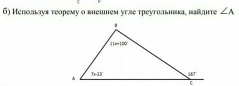 Теорема о внешнем угле треугольника такова: внешний угол треугольника равен сумме двух оставшихся углов треугольника, не смежных с этим внешним углом.