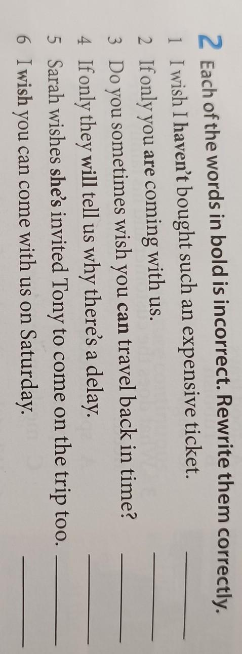 2 Each of the words in bold is incorrect. Rewrite them correctly.