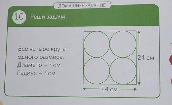 два круга это 1 сторона квадрата, значит диаметр 12см