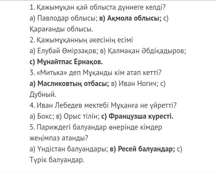 а) Бокс; в) Орыс тілін; с) Французша күресті.