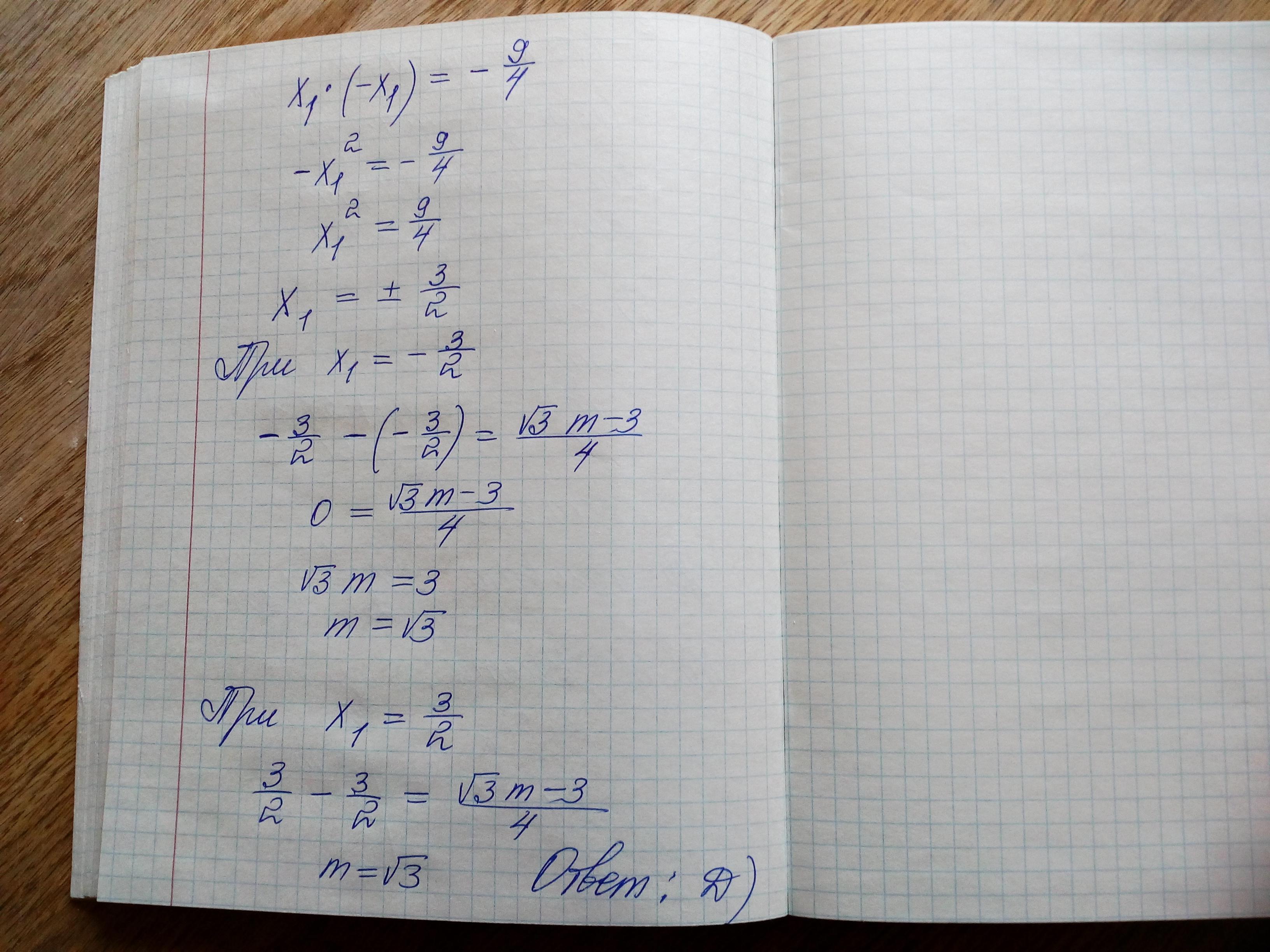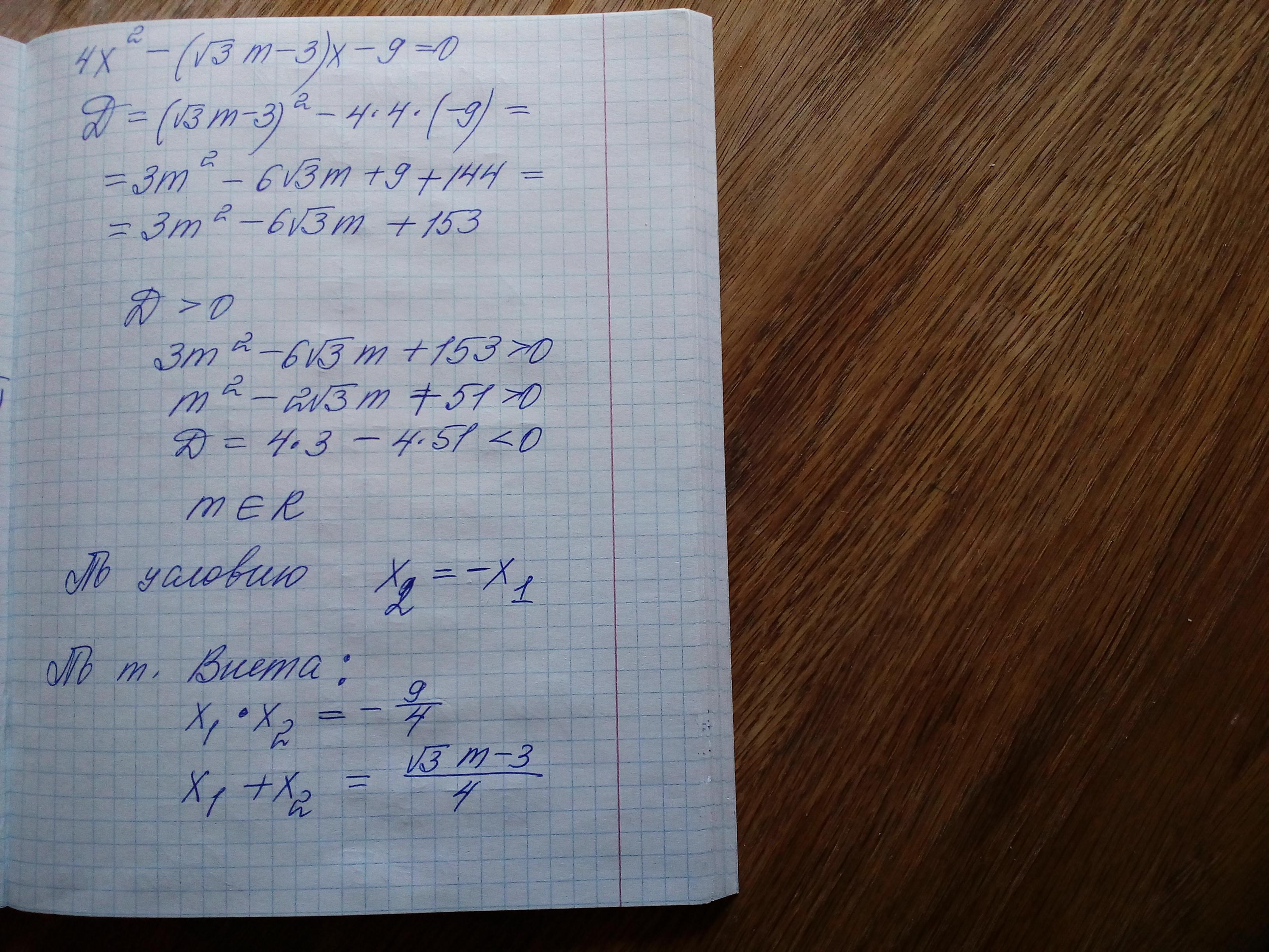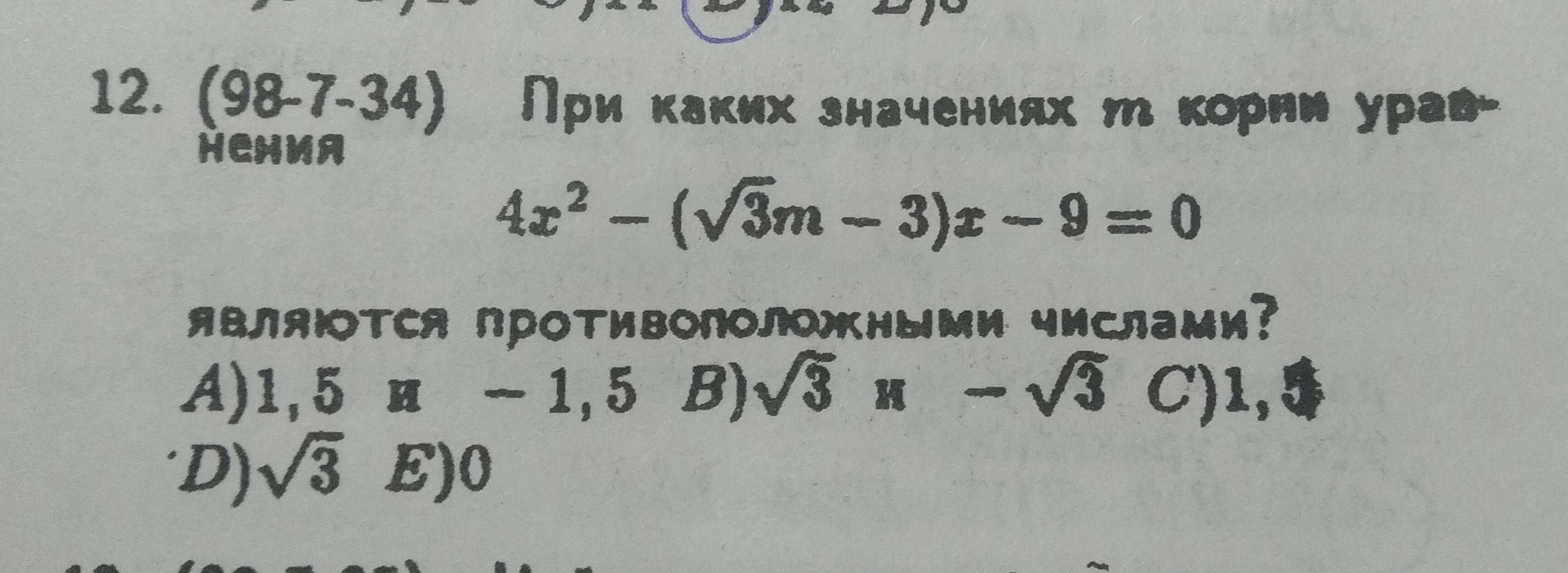 а значит , по теореме Виета , второй коэффициент должен быть равен 0.