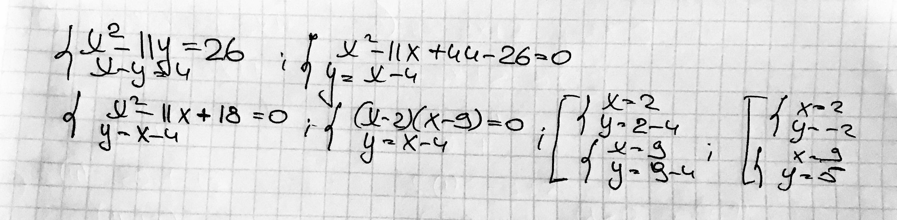 я ошибся там не x^(2) - 11y = 2, x^(2) - 11y = 26