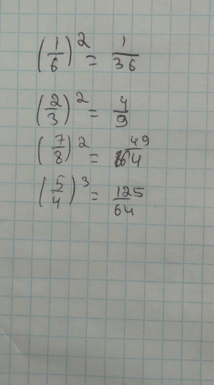 (7/8)² = 7/8 * 7/8 = 49/64