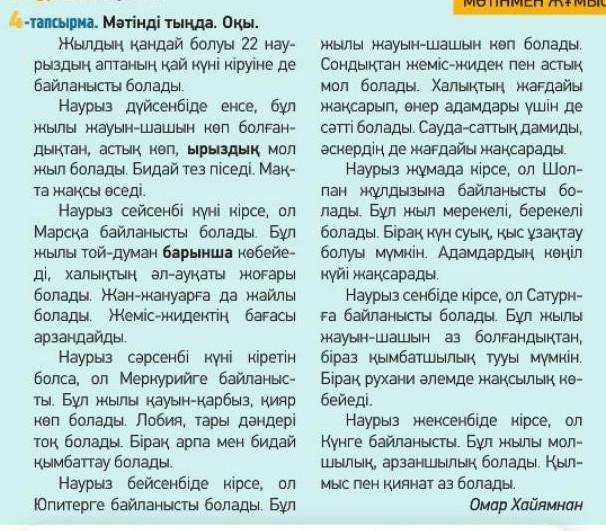 1. «Наурыз қай күні кірсе..» тақырыбы бойынша не үйрендің?