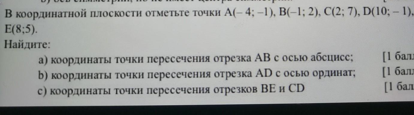 а) точка пересечения отрезка AB с осью абсцисс — (-3;0)