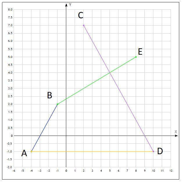 в) координаты точки пересечения отрезков BE и CD — (5;4)