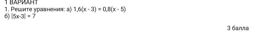 1)1,6(х-3)=0,8(х-5)
