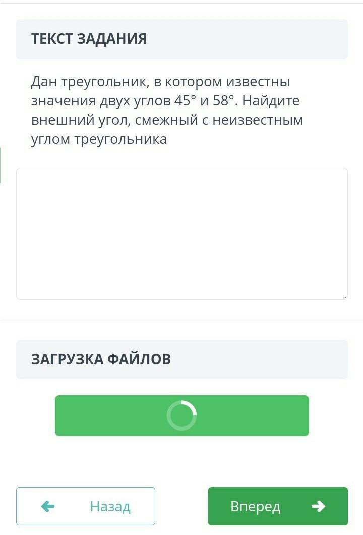 Дан треугольник, в котором известны значения двух углов 45 degrees и 58°. Найдите внешний угол, смежный с неизвестным углом треугольника