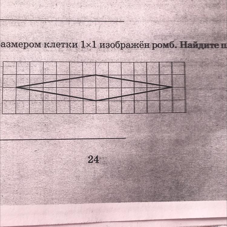 На клетчатой бумаге с размером клетки 1х1 изображён ромб. Найдите площадь этого ромба