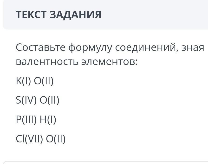 Составьте формулу соединений, зная валентность элементов: K(I) O(II) S(IV) O(II) P(III) H(I) CI(VIII) O(II). ПОМОГИТЕ!!!! СРОЧНО!!!! ДАМ 30 БАЛЛОВ ЗА ОТВЕТ!!!!