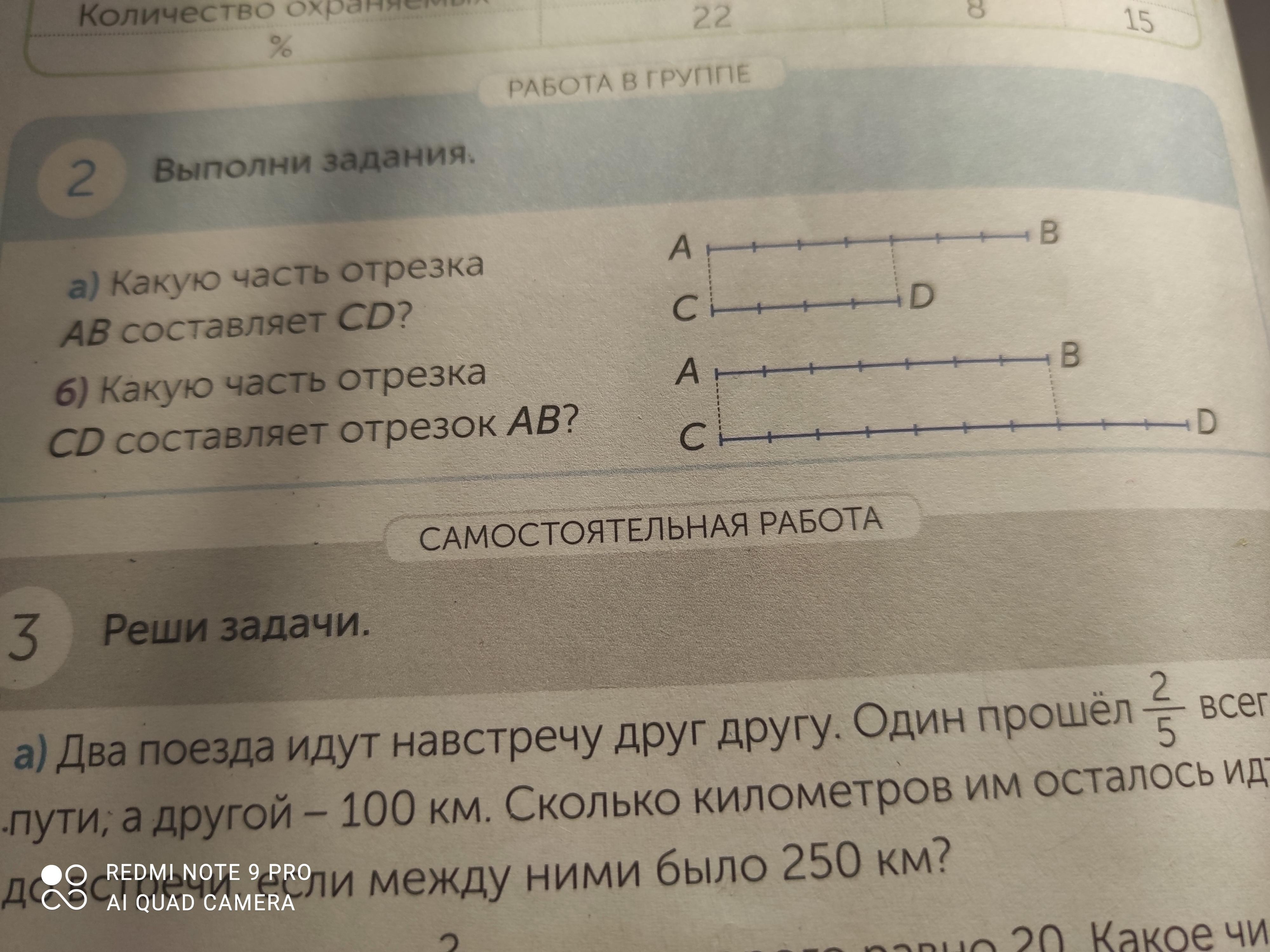 2. Выполни задания. а) Какую часть отрезка AB составляет CD?