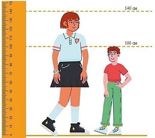 на картинке Катя и Петя.Определи,какого роста Катя, если рост Пети-100 см. Каждое деление на линейке равно 1 см(ответ округлить до десятков