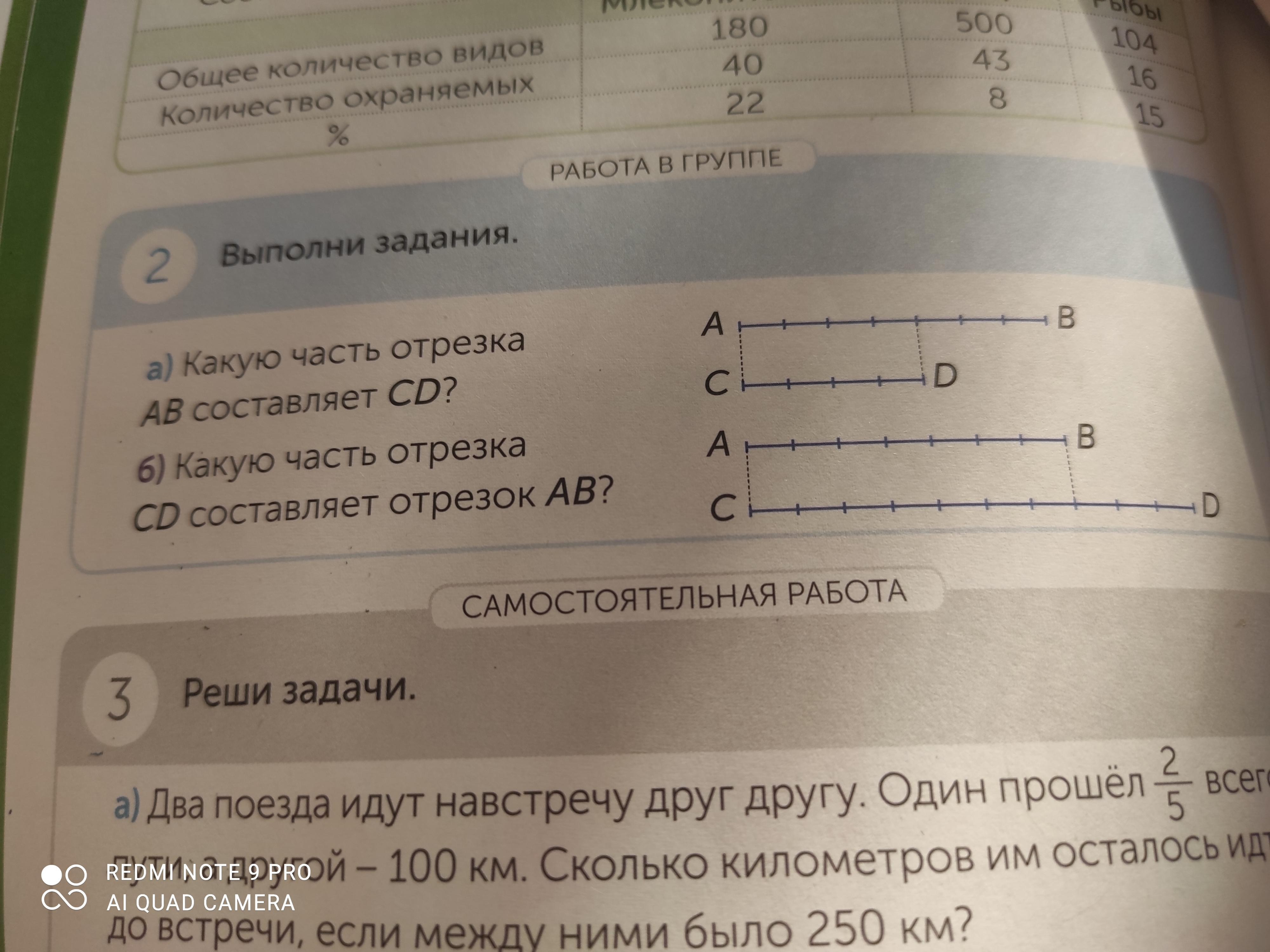 а)Если перевести в сантиметры, то отрезок АВ составляет 3,5 см.СД занимает 2 см.